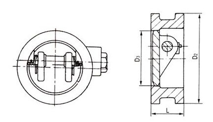 H76X对夹蝶型旋启式止回阀主要外形尺寸: