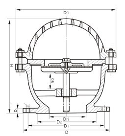 底阀由阀体,阀瓣,阀盖,衬套,密封圈等零件组成,详见下图水源的水从阀盖进入阀体.在流体的压力作用下,阀瓣打开水,当示停后出口管内的压力将阀瓣迅速关闭,液体将不会倒回水源,起到了即畅通抽水又节约水能损失的作用.
