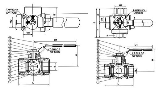 Q14F L型三通内螺纹球阀主要尺寸参数: