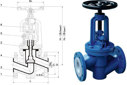 J41F46衬氟截止阀被广泛应用在石油、化工等管路系统中做截断介质用,但塑料衬里的截止阀严禁用做流量调节,以免节流口处产生的高速介质流冲蚀破坏密封面。阀瓣与阀杆设计为一体结构,用以防止由于管路压力波动造成内件冲出阀体的可能性,结构紧凑,使用安全。