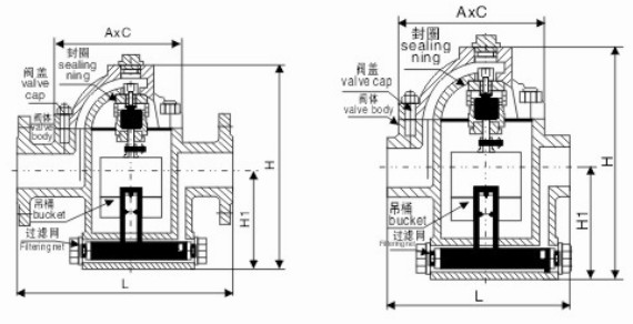 6、敝口形的浮子抗水击。吊桶上设有溢出排气孔,可有效防止蒸汽汽锁、空气气堵现象。(非凝结性的高温空气也可排除)。